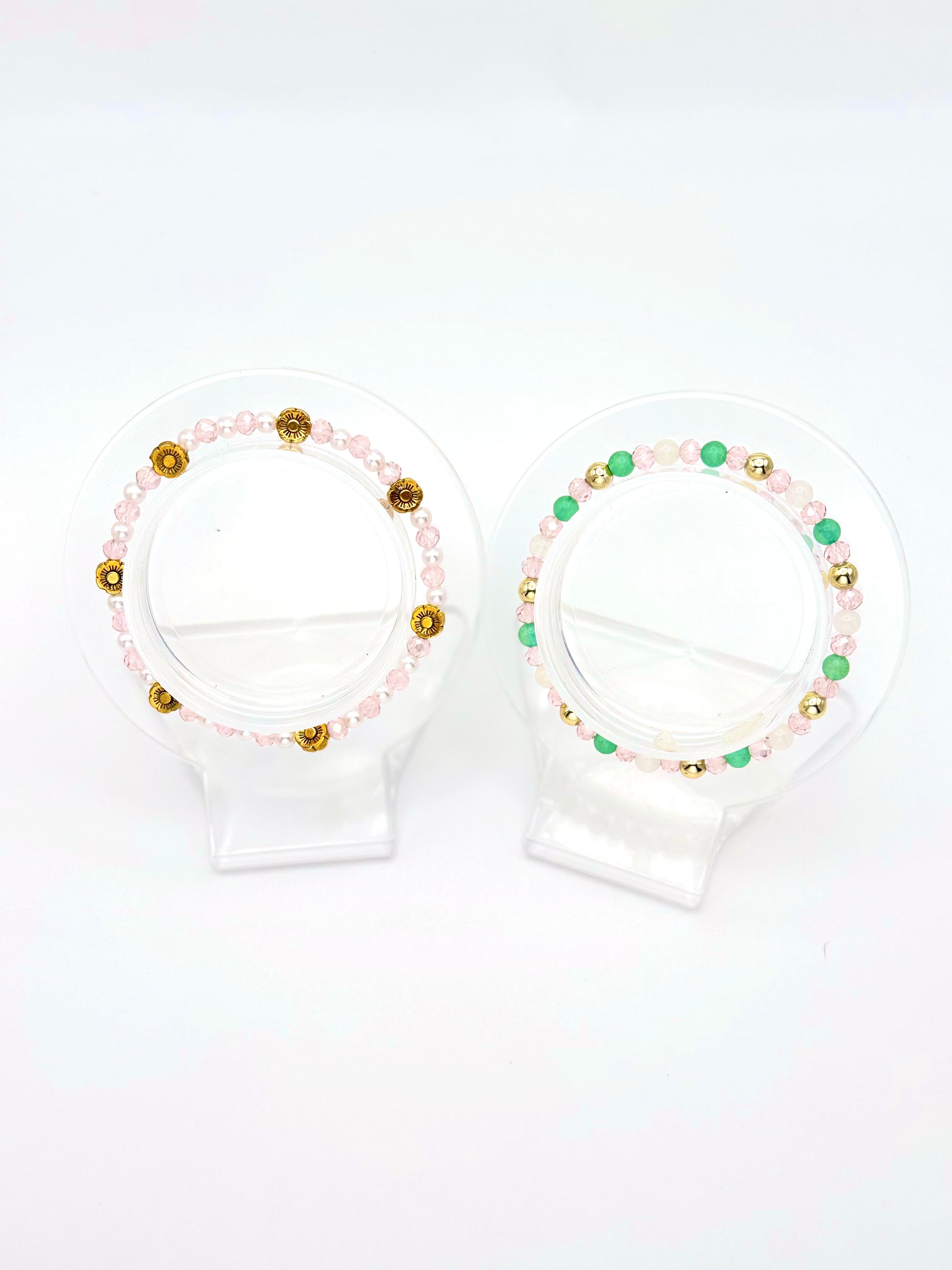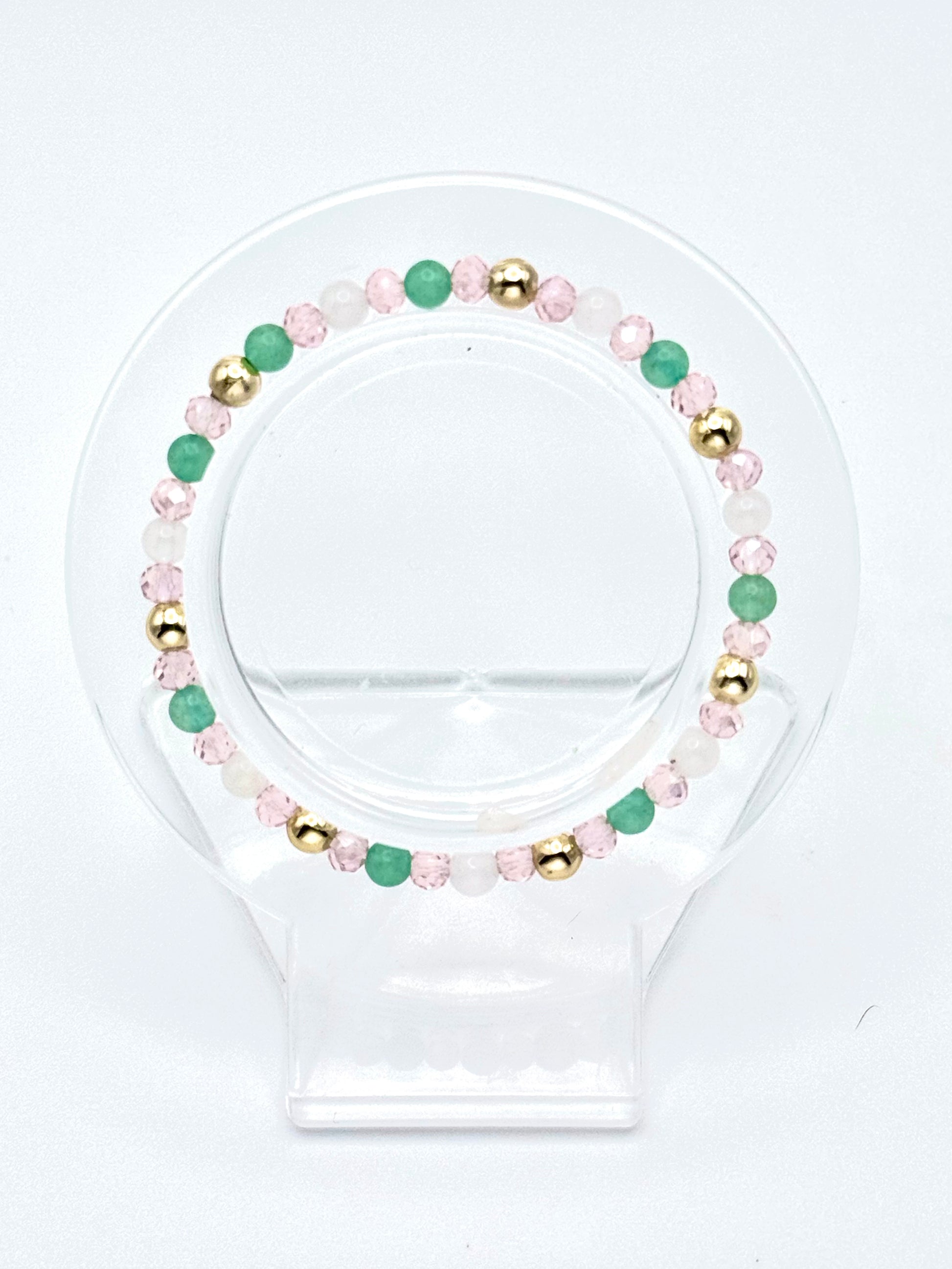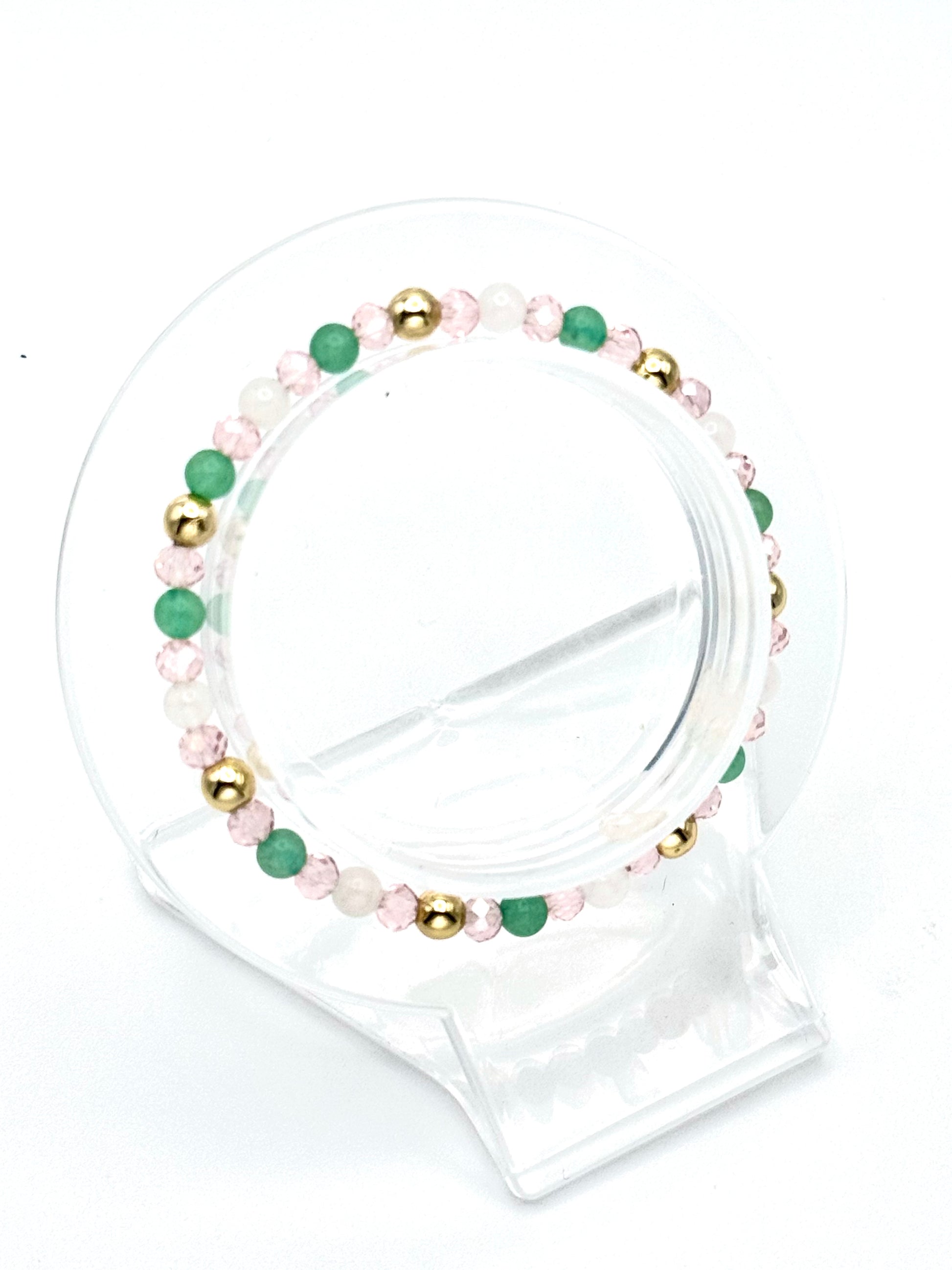 - Material: Gold Plated Spacer, White Jade, Green Agate, and High Quality Pink Crystal beads.